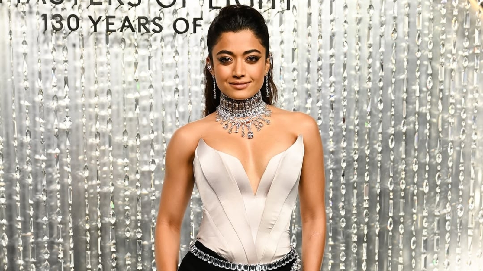 All eyes are on Rashmika Mandanna as she dazzles in a strapless ensemble and beautiful jewelry.