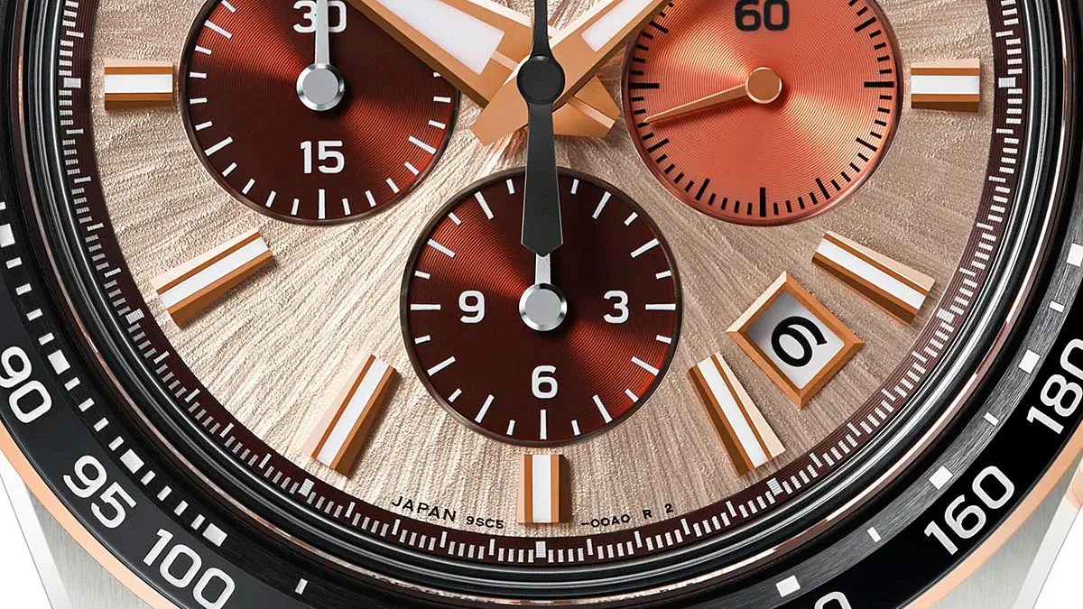 However the Tentagraph is distinctively a Grand Seiko, inside—because of the caliber 9SC5 motion—and out—that includes the model’s signature intricate dial textures.
