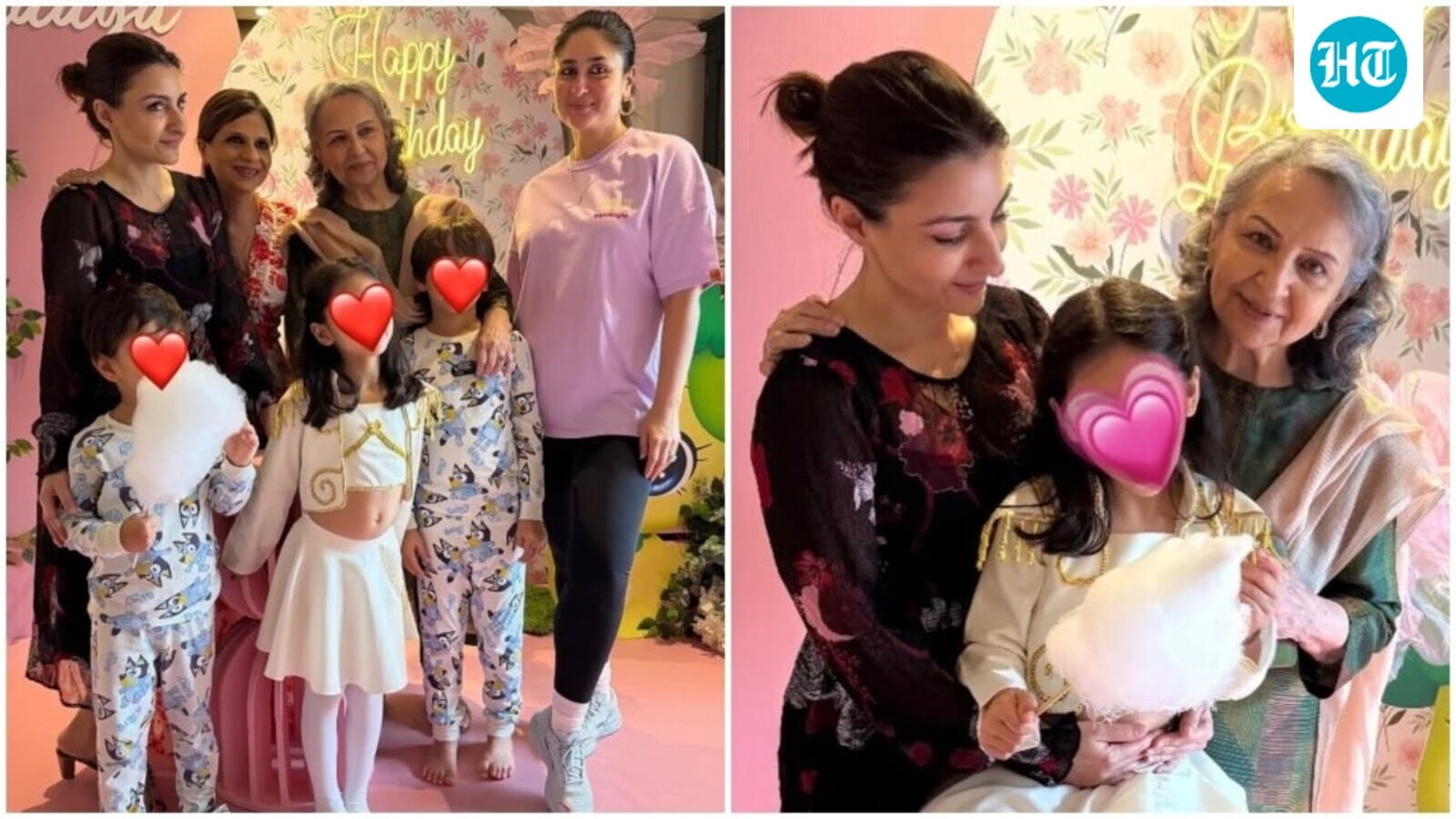 Information / Life-style / Style / Taimur, Jeh twin in lovable blue and white outfits at Inaaya’s eighth celebration with Kareena Kapoor, Sharmila Tagore