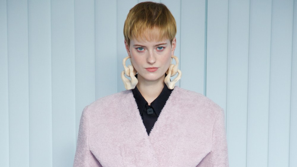 The designer additionally proposed sharp tailor-made fits, coats with large shoulders, tactile clothes with smocked particulars, stretchy knits, and, for the primary time, large, sculptural jewellery carved from wooden, a fabric Leroy stated she wish to additional discover in future collections.